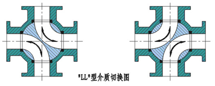 1、球形流道為雙L型,閥體流道為直角四通。